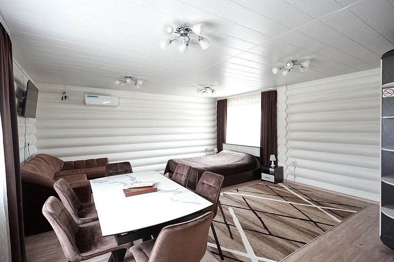 Вы сможете остановиться в уютных бревенчатых коттеджах в русском стиле или выбрать отдельный номер. Независимо от того, какой вариант вы предпочтете, комфорт вам гарантирован. В каждом жилье есть всё необходимое — от фена до халатов.