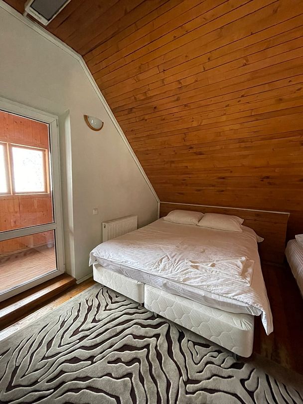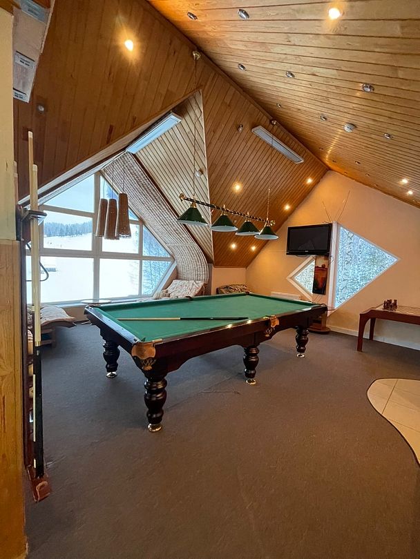 Трехэтажный дом. На 2-этаже гостиная с панорамным видом на гору и озеро, бильярдным столом, шахматным столом, просторной кухней. 5 спальных комнат с двуспальной кроватью, 2 комнаты с 2-я односпальными кроватями, зона для пинг-понга.
