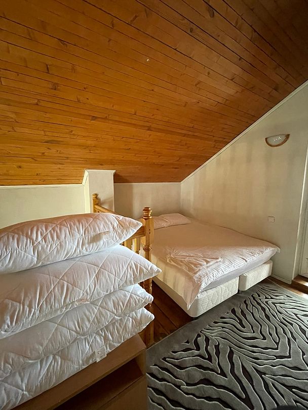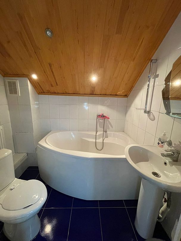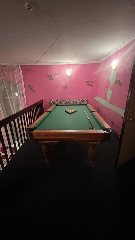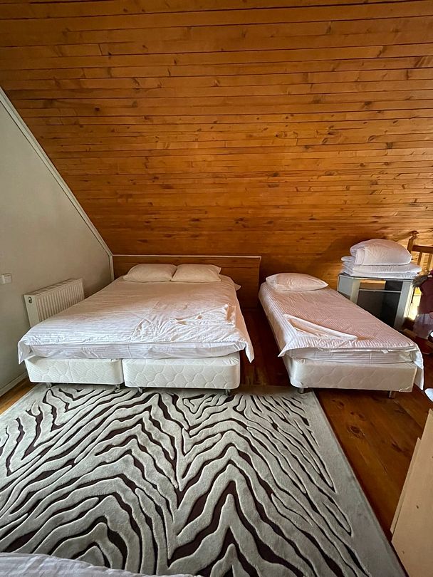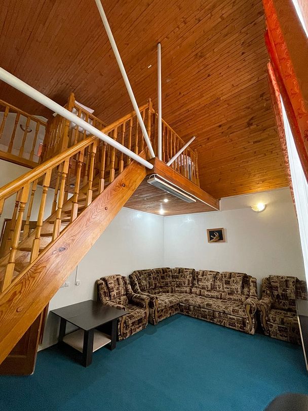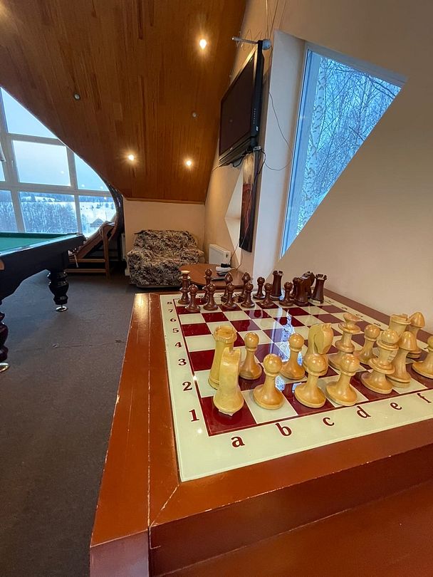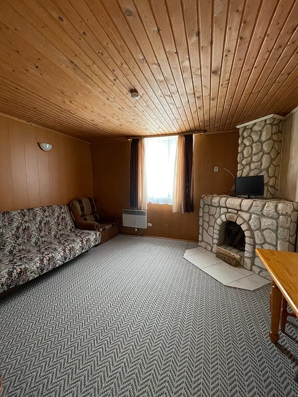 Трехэтажный коттедж. Просторная гостиная с камином, 5 комнат, двухуровневые кровати, бильярдный стол, кухня, 1 санузел с душевой, 1 санузел.