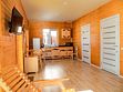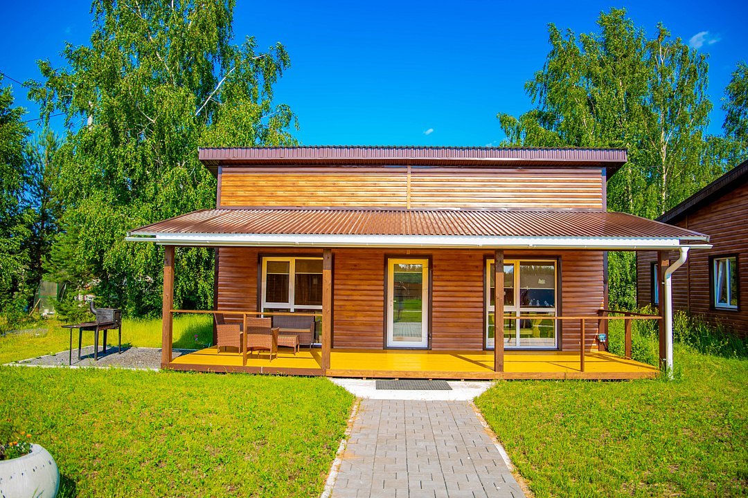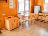 В холле расположен диван — дополнительные два спальных места. Оборудована обеденная зона, кухня, шкаф для верхней одежды. В домике есть санузел и душ. Отопление и подогрев полов. Выход из домика осуществляется на террасу. Рядом расположена мангальная зона.