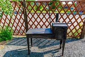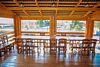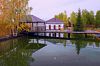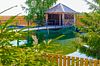 Расположенная прямо над водой беседка является прекрасным местом для семейного досуга или встреч с друзьями. Внутри имеется стол, деревянные лавочки и пара кресел-качалок. Неподалеку оборудована площадка для приготовления блюд на мангале.