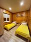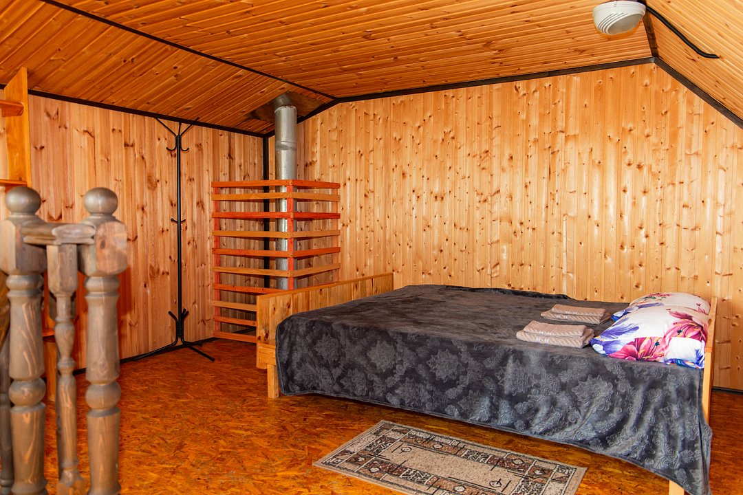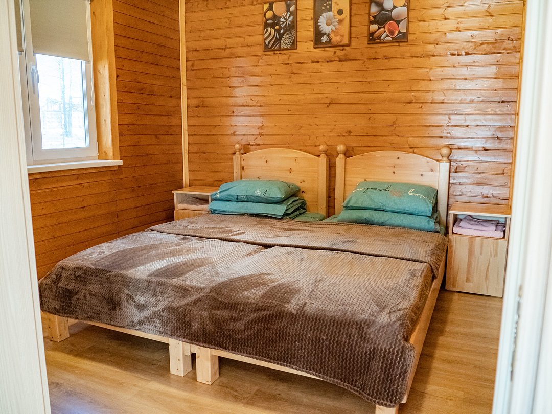 В доме расположены две комнаты-спальни. В каждой по две односпальной кровати и две прикроватные тумбочки. Кровати-трансформеры, поэтому возможно сделать одну двуспальную кровать с двуспальным матрасом (обговаривается индивидуально при бронировании).