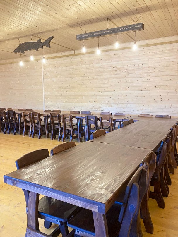 База отдыха «Доброfish» предлагает прекрасную летнюю беседку, вмещающую до семидесяти человек, идеально подходящую для больших компаний. Здесь предусмотрены деревянные столы и стулья, а также зона для танцев со светомузыкой, создающей атмосферу праздника.