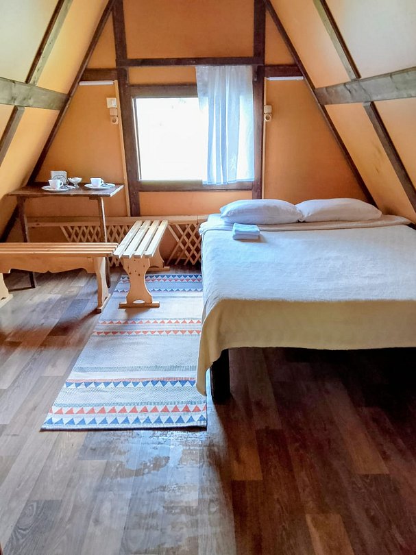 Для проживания гостей подготовлены экологически чистые деревянные дома, оборудованные всем необходимым для комфортного проживания. При создании интерьеров использовались только экологичные материалы. Каждый домик на базе отдыха отапливается – это дает возможность принимать отдыхающих в любое время года и в любую погоду. На территории находятся 3 уютных скандинавских домика, коттедж на 7 человек, апартаменты на 10 человек и двухместные домики.
