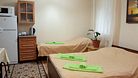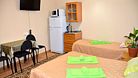 телевизор, микроволновая печь, двуспальная кровать, две односпальные кровати, вешалки, зеркало, комод, набор посуды, информационная карта, меню, чайник, отопление, общая ванная комната, вид во двор, стаканы, столовые приборы, стул, стол, внутренний телефон, мини-холодильник, кухонный уголок, уборка номера, вода из артезианской скважины, без питомцевВ номере