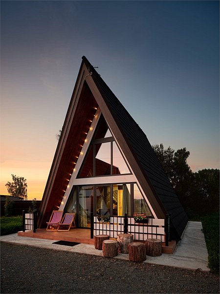 - дома А-Frame: современные и просторные дома с каминами, панорамным видом на залив и неповторимым дизайном;