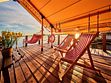 На террасе: мини кухня, набор посуды (одноразовый), электрический чайник, микроволновая печь, капсульная кофе-машина, холодильник, стол, 2 стула, 2 шезлонга, умывальник, комод и стеллаж, ночное освещение, гамак, лестница с прямым спуском в воду.