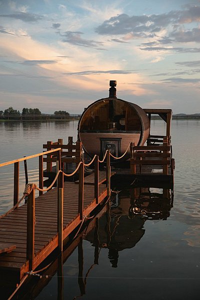 Инфраструктура: зона отдыха, полотенца, шапочки, березовые веникиМинимальное время аренды: 2 часаБаня-бочка расположена на понтоне в живописном месте залива р. Камы.