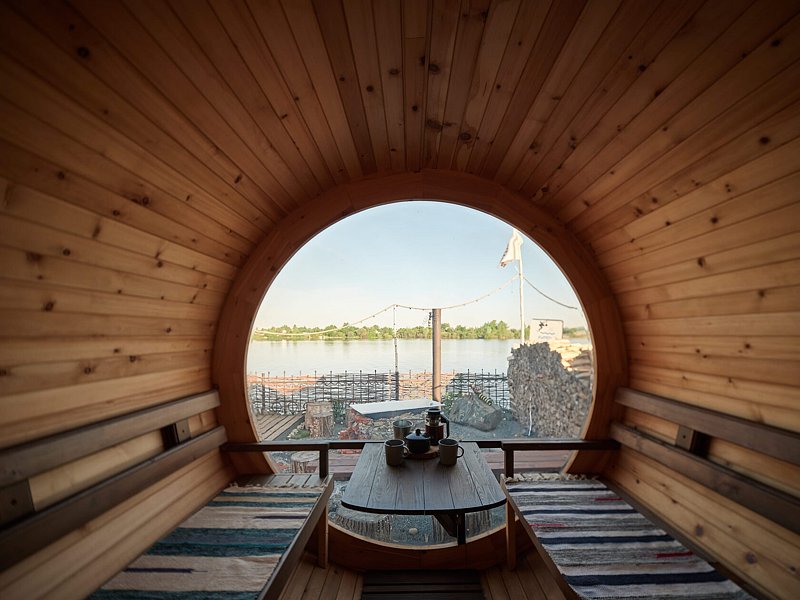 Ванна под открытым небом, отапливаемая дровами, представляет собой уникальное место для релаксации и отдыха. Ее особенностью является возможность принимать ванну на свежем воздухе при любой погоде. Преимуществом также является, открывающийся вид на реку.