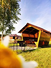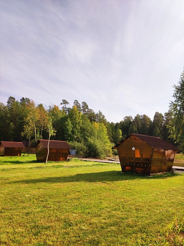 Инфраструктура: чан, зона отдыха, душБанный комплекс в лесной части базы на берегу реки Кама.