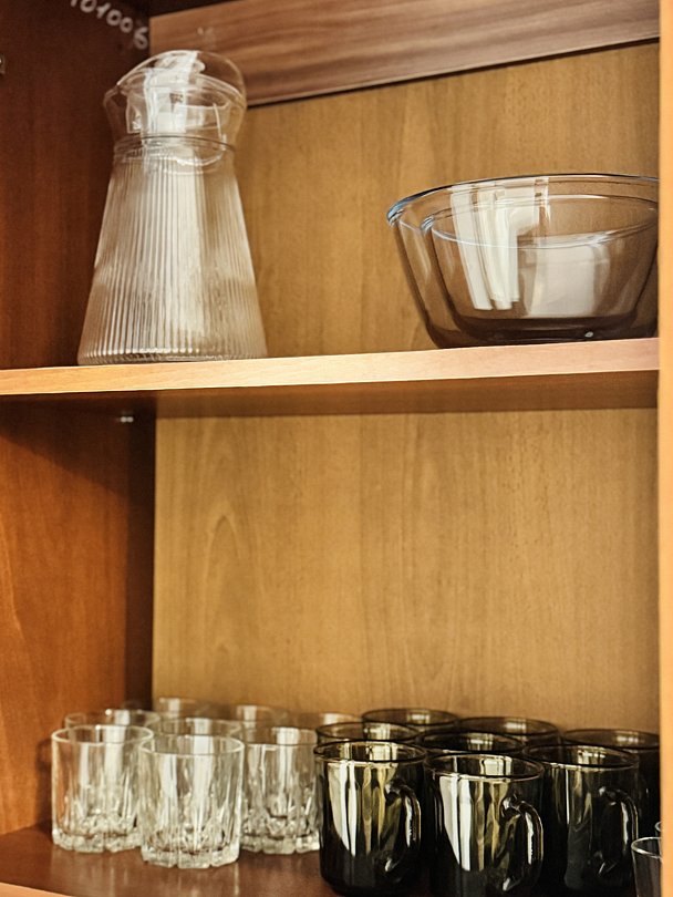 - кухонный гарнитур (минимальный набор посуды);
