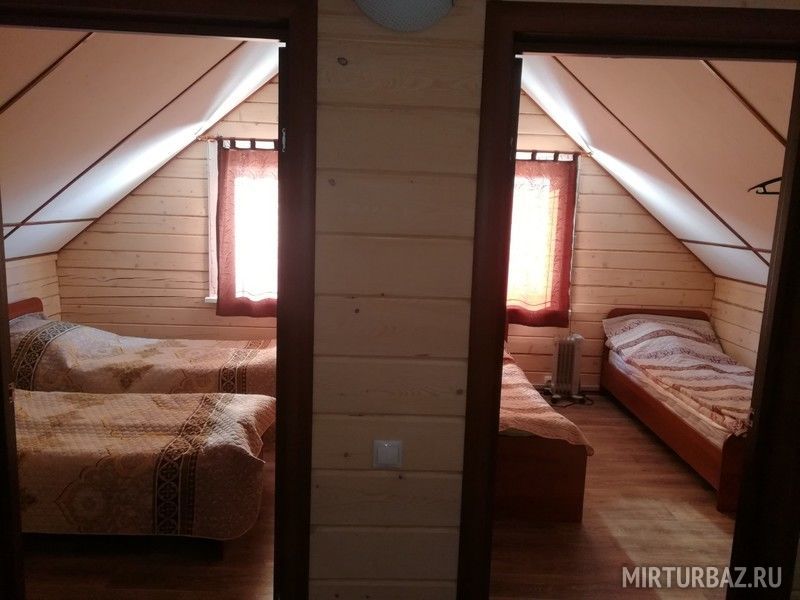 На втором этаже имеются две отдельные комнаты со спальными местами.