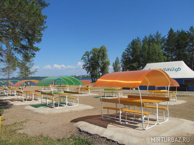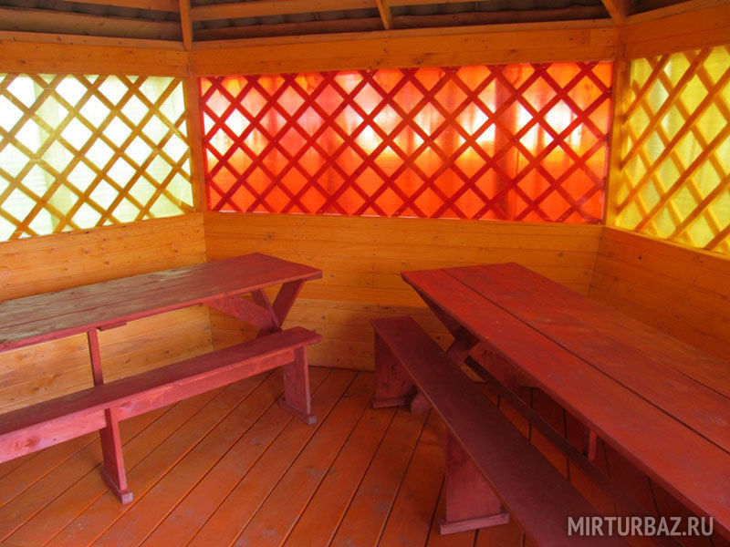 На территории дома отдыха "Сокол" имеется уютная деревянная беседка, которая идеально подходит для отдыха дружной компанией на свежем воздухе.