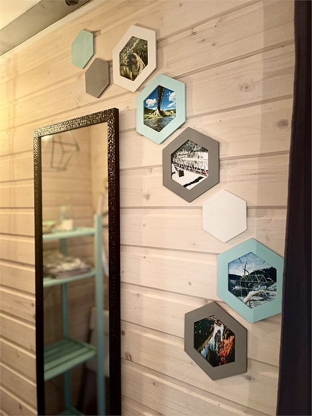 Горячая вода подается от газового котла и ограничена 50 литрами (может быть увеличена по просьбе гостей). Отопление идет от теплового конвектора, печи на дровах или автономного отопителя. Туалет кассетный био. Есть душ. Кухня с газовой плитой, всей необходимой посудой, бокалами и ведром для шампанского. Холодильник в наличии. Также для гостей есть банные халаты, кроксы (обработанные антисептиком) и набор банных полотенец. Самое главное — это вид, который открывается вам через большое панорамное окно. Дом мобильный, сейчас он стоит на берегу реки Усьва с видом на реку, скалу и хвойный лес.