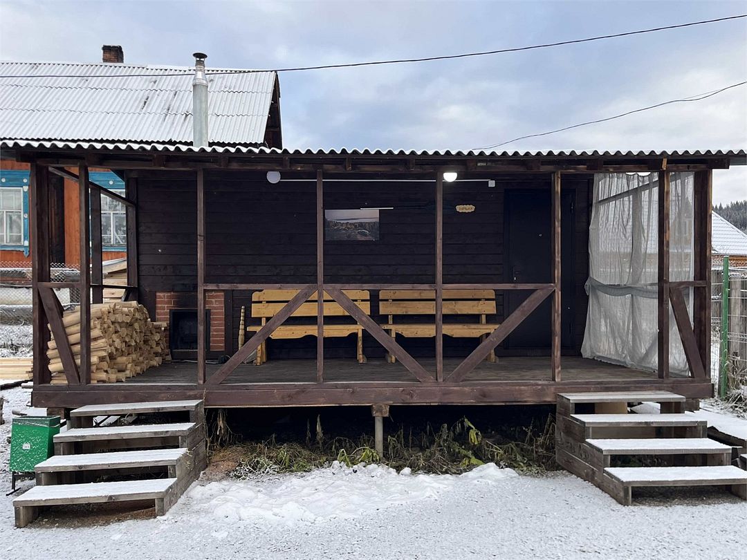 Домик на берегу реки Усьва с панорамным входом. В доме есть 2 односпальные кровати, которые при желании можно совместить, а также полати.