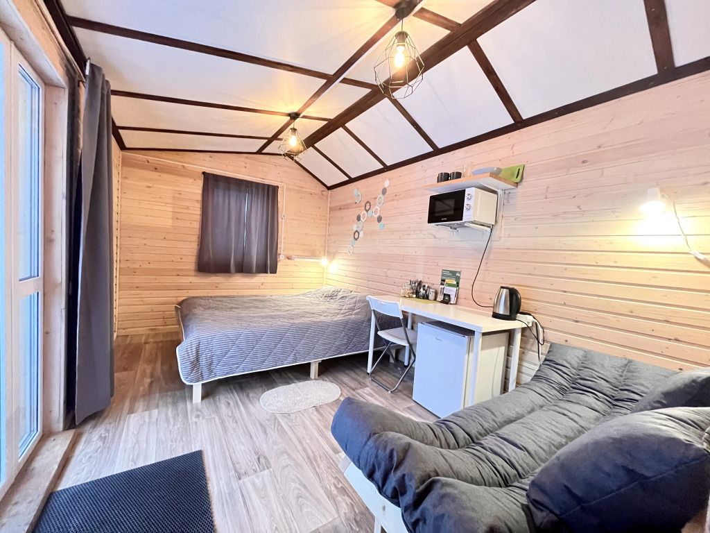 Уютные домики оснащены всем необходимым для комфортного проживания. На территории есть баня и мангалы прямо рядом с глэмпингами.