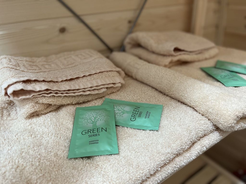 Здесь позаботились и о необходимых мелочах: чай, кофе, одноразовые тапочки, шампуни и гели для душа, фен.