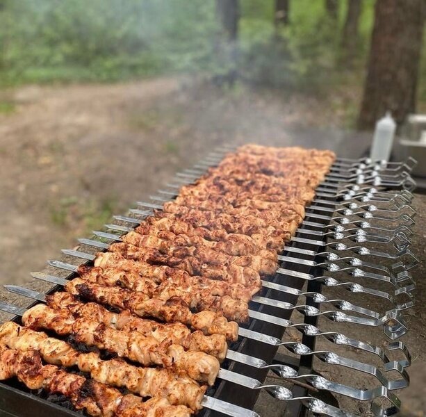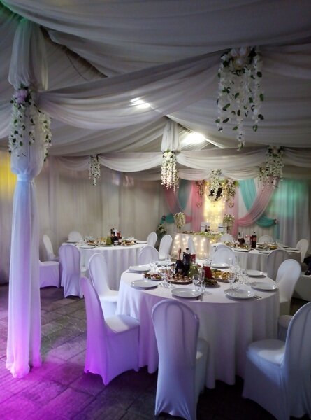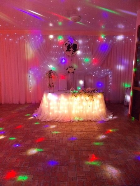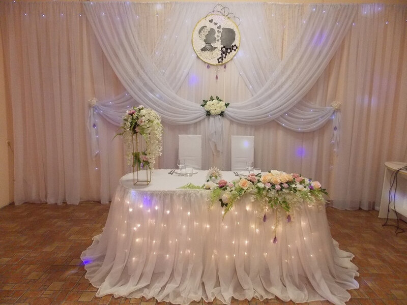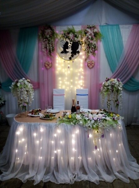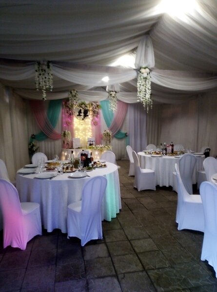 Оформление: президиум, стол молодоженов, свадебная арка, декоративные аксессуары – цена договорная. Зона барбекю, шампура, казан.