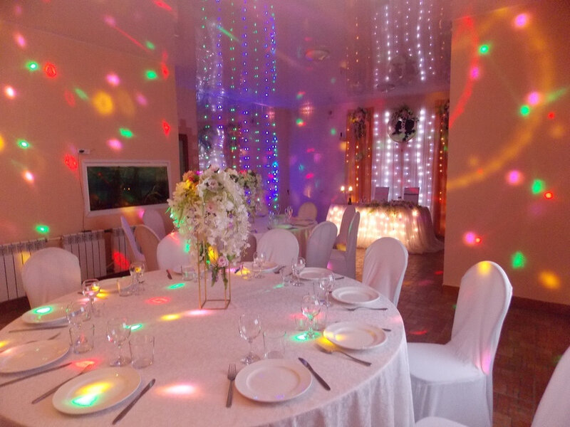 Летний банкетный зал на 50 персон (звуковое/световое оборудование, оформление зала, скатерти, банкетная посуда). Банкетное меню, с учетом Ваших вкусовых предпочтений.
