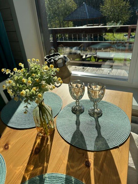 Допускается размещение с питомцами только в домике «Хижина». Воспитанные собаки маленького и среднего размера.