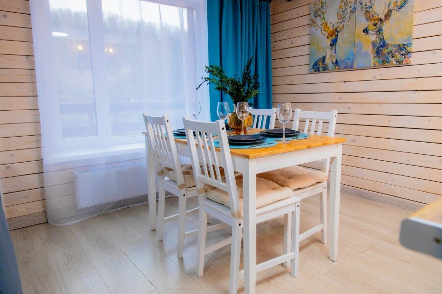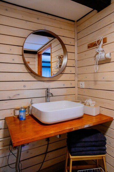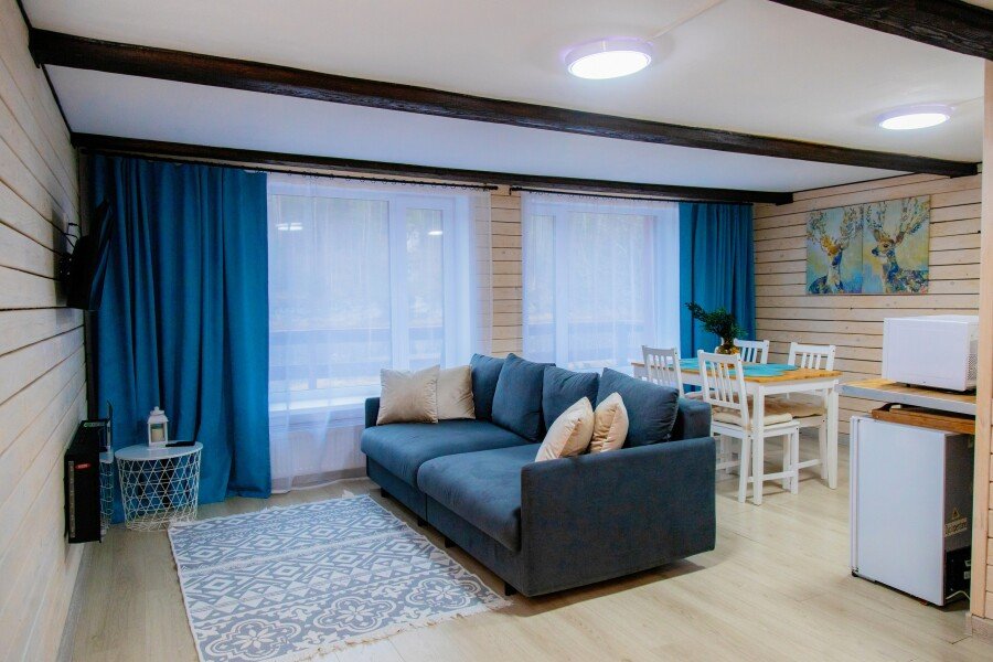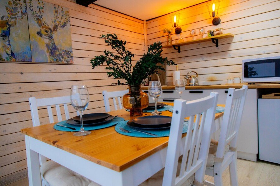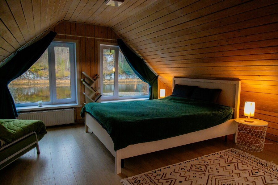 Для проживания гостей подготовлены уютные домики с панорамными окнами с великолепным видом на лес, горы и реку. Каждый дом оборудован всем необходимым для вашего комфортного отдыха и включает кухню, оснащенную бытовой техникой и набором посуды, гостиную с телевизором и собственный санузел с душем. Бесплатный Wi-fi доступен в каждом домике.