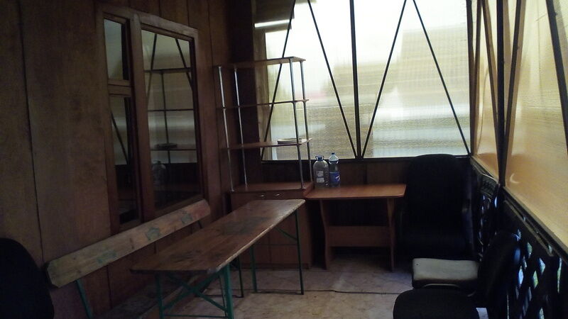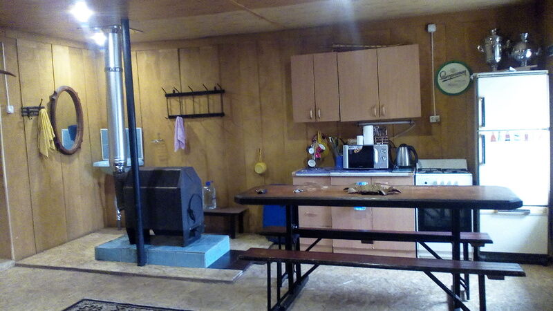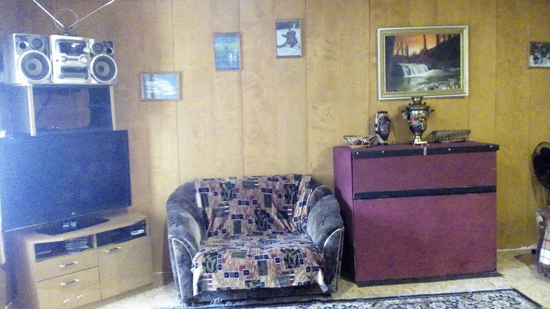 Деревянный дом с мебелью, телевизор, спутниковое телевидение, холодильник, микроволновка, газовая плита, вентилятор, столовые принадлежности.