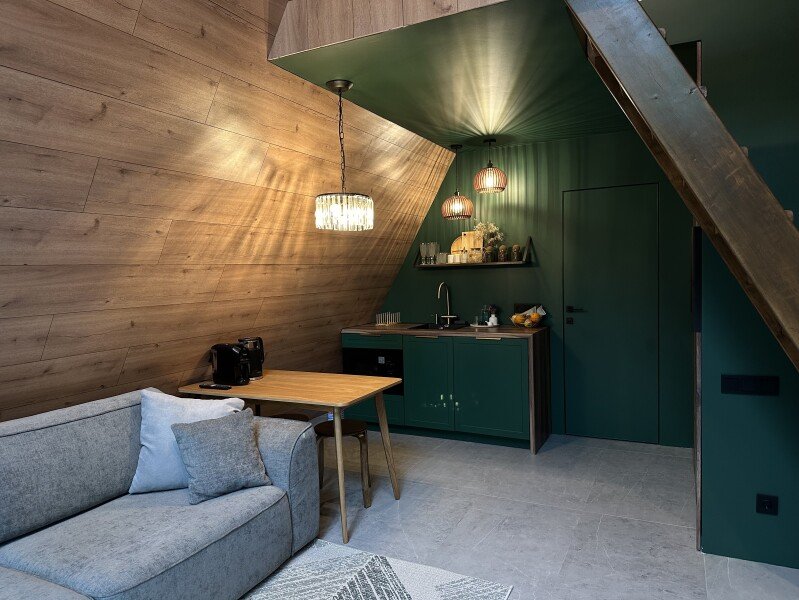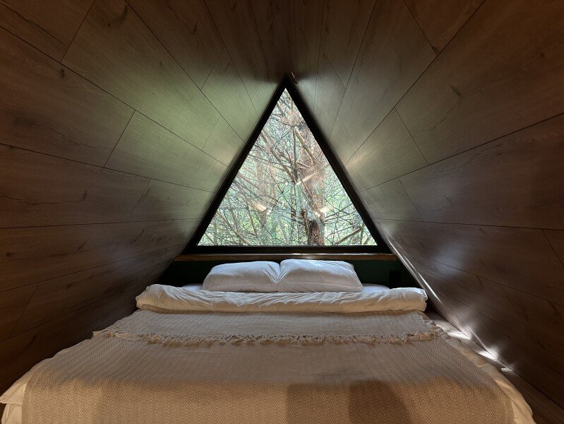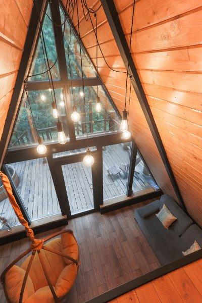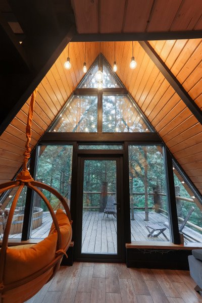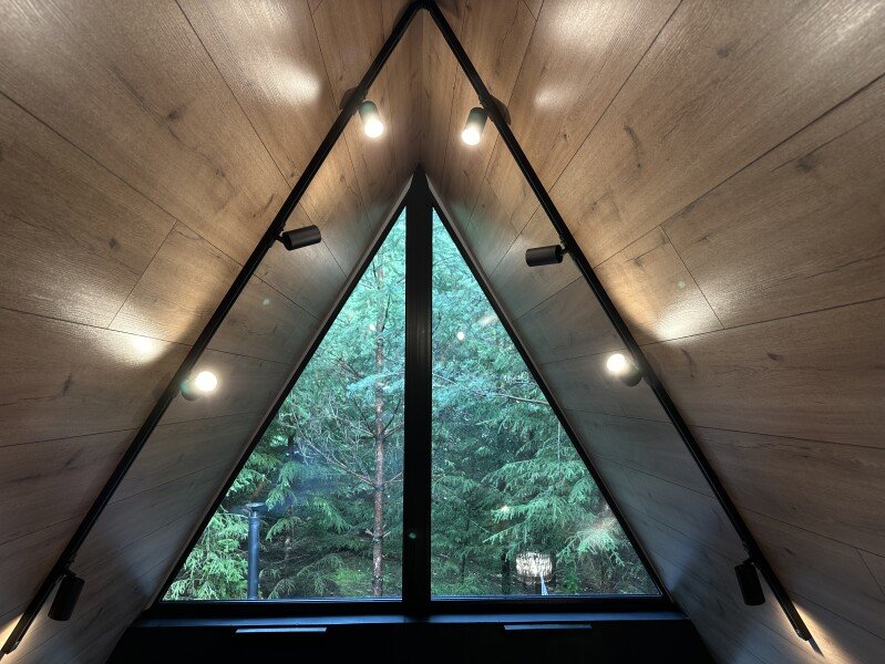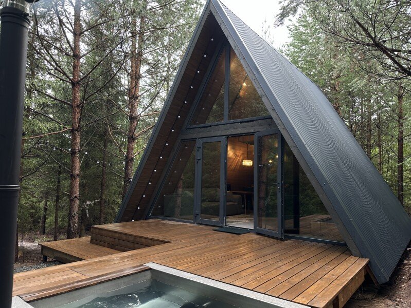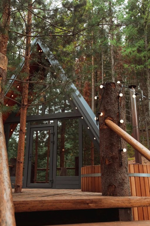 Проведите свой отдых, остановившись в уютном треугольном домике, выпаленном в современном стиле, и наслаждаясь окружающей природой и свежим лесным воздухом. В доме есть настольные игры, книги и проектор.