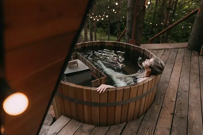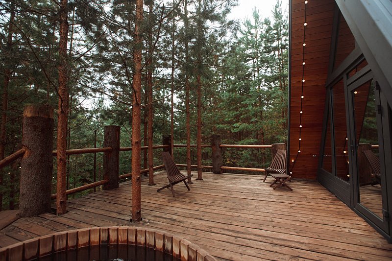 Купель на террасе дома «Хижина».