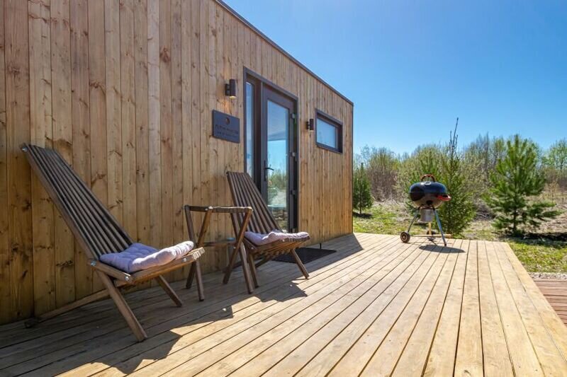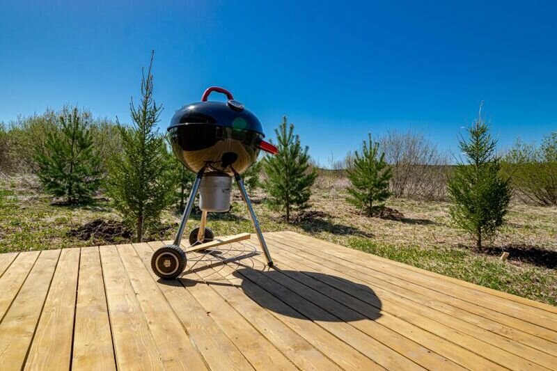 У дома есть собственная терраса, мангальная зона, уличная мебель. Решетка и шампура предоставляются, а уголь и розжиг привозите свои, либо можно приобрести за дополнительную плату.