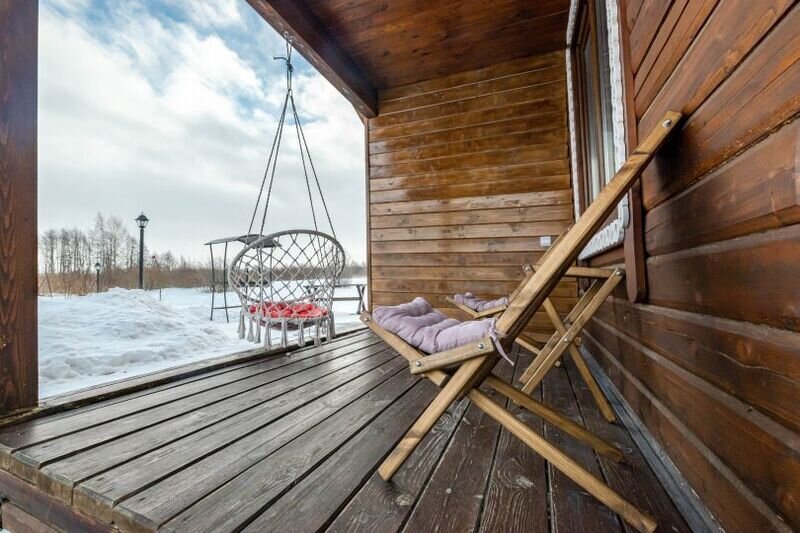 У коттеджа есть собственная терраса с видом на озеро, мангальная зона.