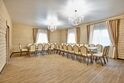 Просторный светлый банкетный зал 130 кв.м. с панорамными окнами вмещает в себя до 70 гостей. В зимний период в зале тепло, предусмотрено отопление. Аренда зала включает в себя банкетную мебель столы и стулья, гардероб, гримерную комнату, 3 уборные. По меню, на выбор, предлагаются европейская и азиатская кухни.
