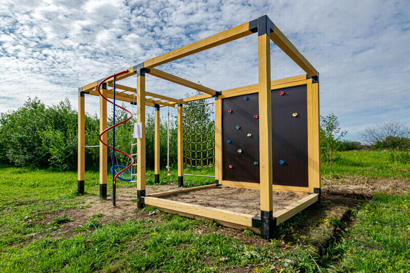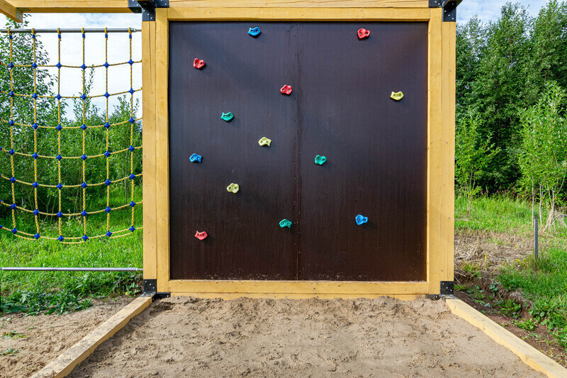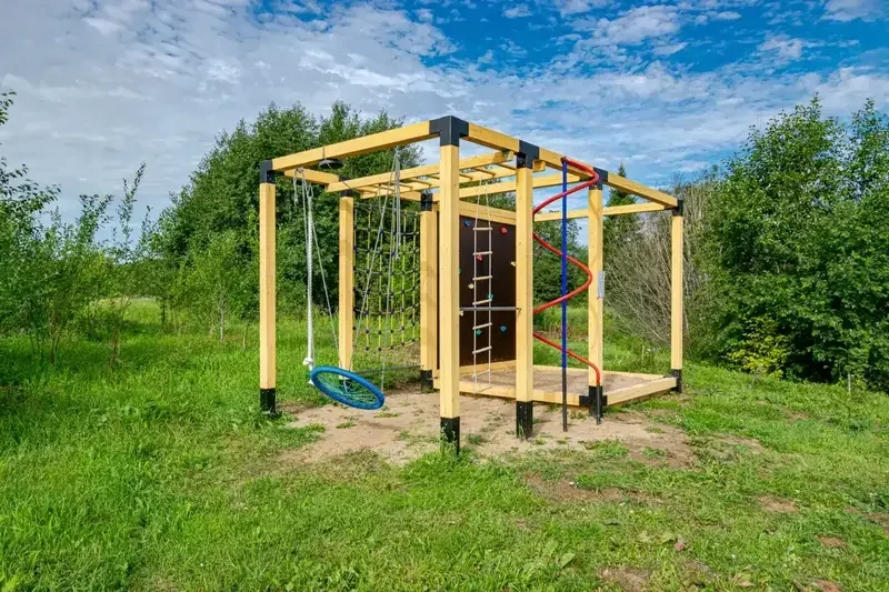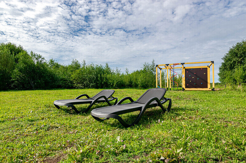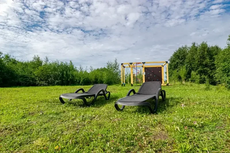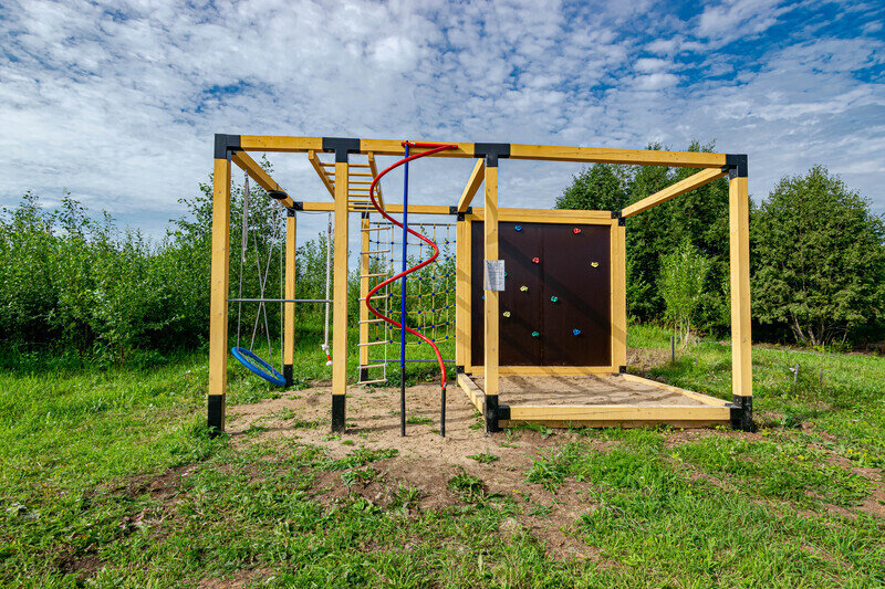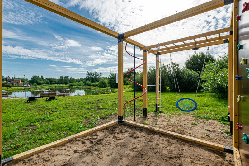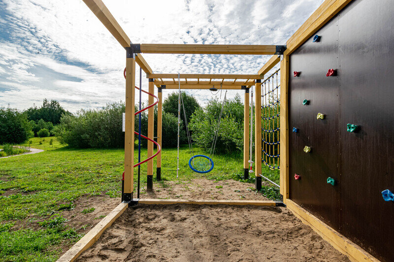 На территории комплекса также имеется детская площадка с горкой, качелями и песочницей, где как дети, так и взрослые могут наслаждаться развлечениями.