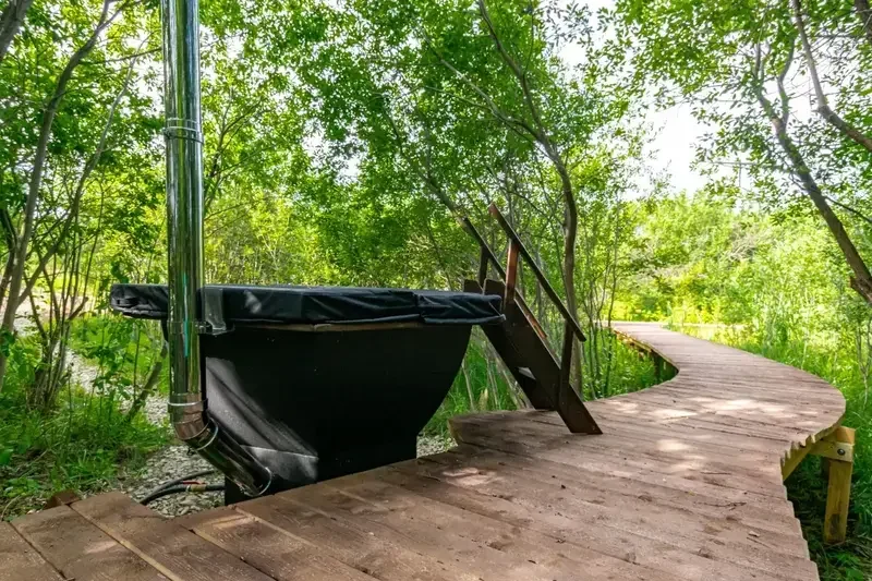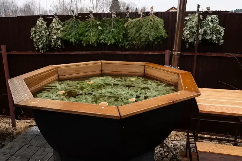 Ощутите магию горячей уличной купели на дровах. В период с мая по сентябрь включительно самое позднее время готовности к 20:00, в зимнее время с октября по апрель включительно — 21:00. Для приготовления купели понадобится не менее 3 часов, поэтому необходимо сделать заявку заранее.