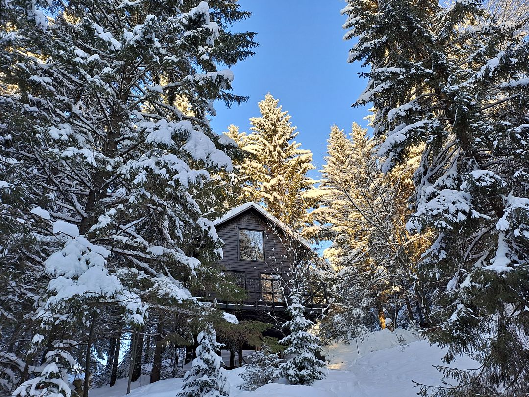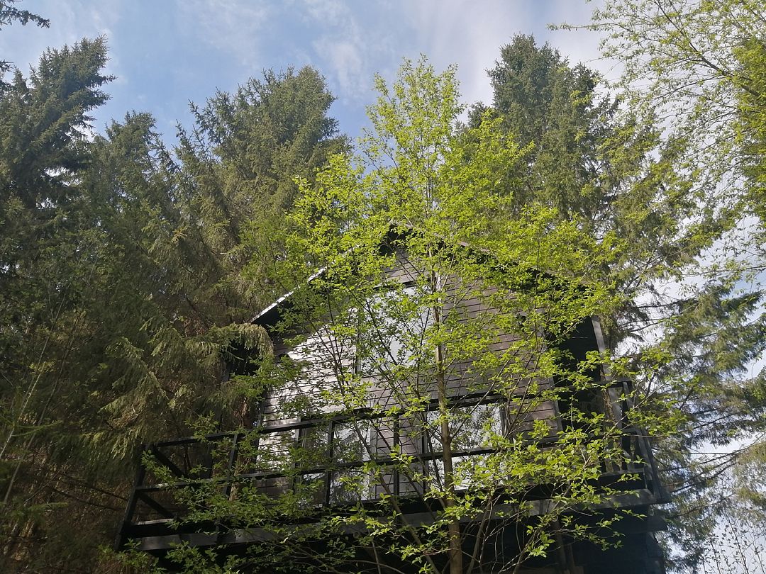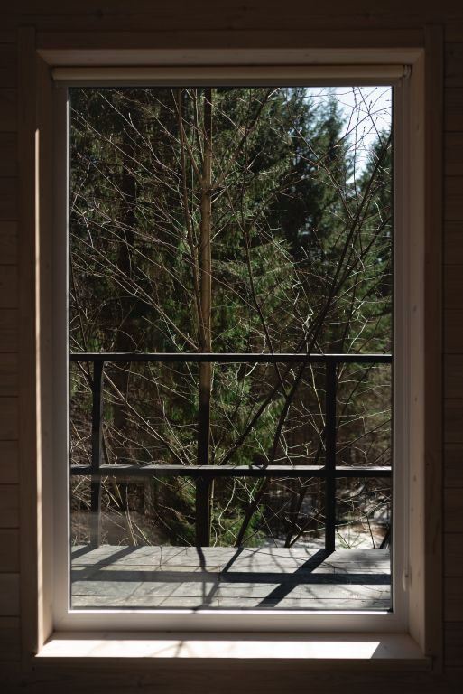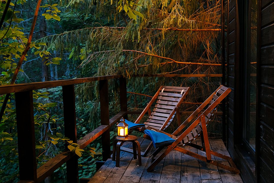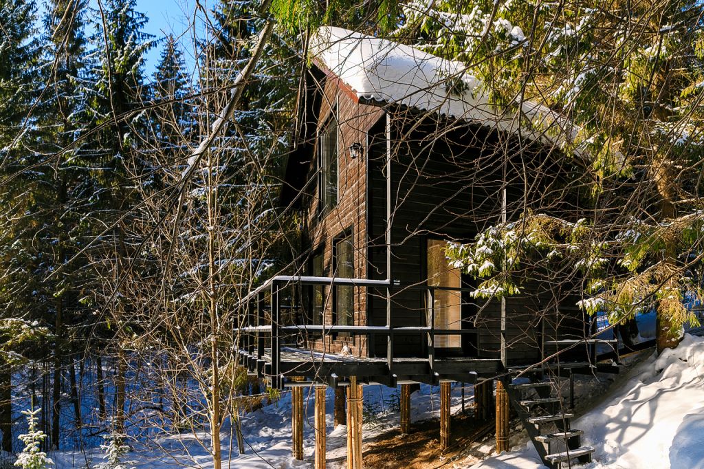 Дом среди деревьев — один на большой территории. Из окон вы будете видеть только лес.