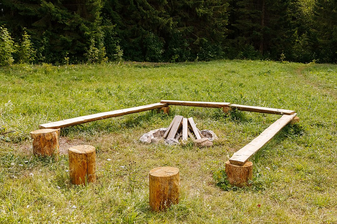 Костровая зона. Дрова предоставляются в неограниченном количестве. Мангальная зона. Дрова, угли, решетка, шампуры, казан предоставляются бесплатно.