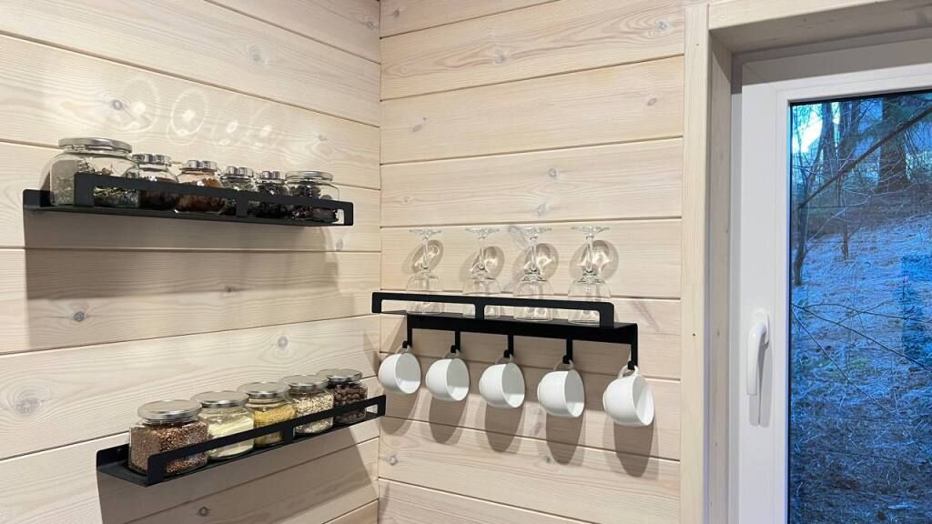В доме могут с комфортом разместиться 4 человека. Есть двуспальный диван на 1-м этаже и двуспальная кровать на 2-этаже. Также есть все удобства: душ, туалет, горячая вода (и холодная тоже). Кухня оборудована необходимой техникой и посудой. Есть кофе, чай, крупы, специи, питьевая вода. На территории есть мангальная и костровая зоны. Бесплатно предоставляются дрова, уголь, решетка.