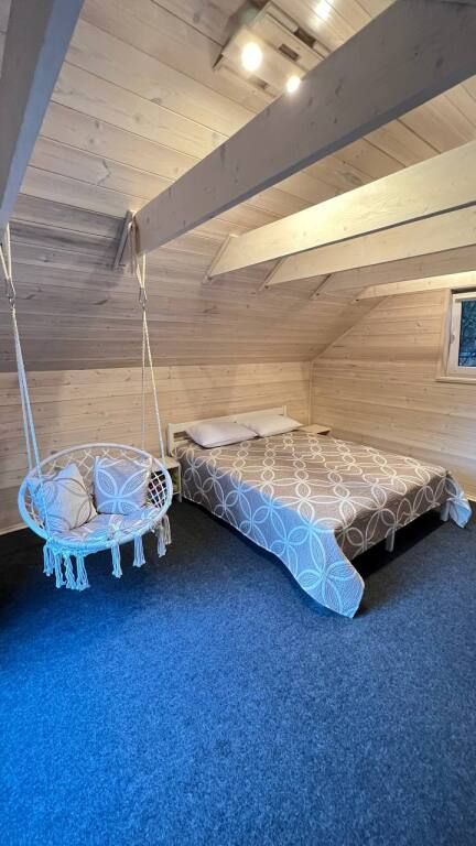 - спальные места: двуспальный диван (1,6 на 2 метра) на 1 этаже, двуспальная кровать (не матрас на полу, а полноценная деревянная кровать с анатомическим матрасом размером 1,6 на 2 метра) на 2 этаже;