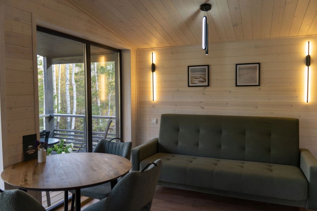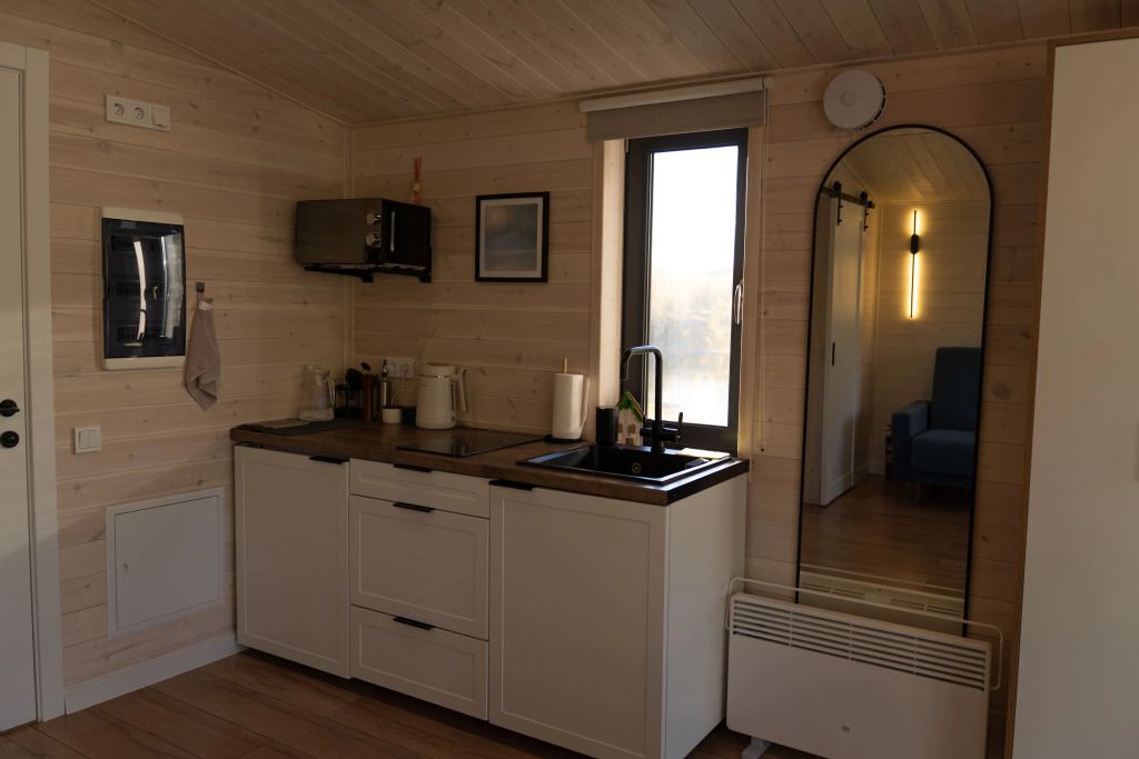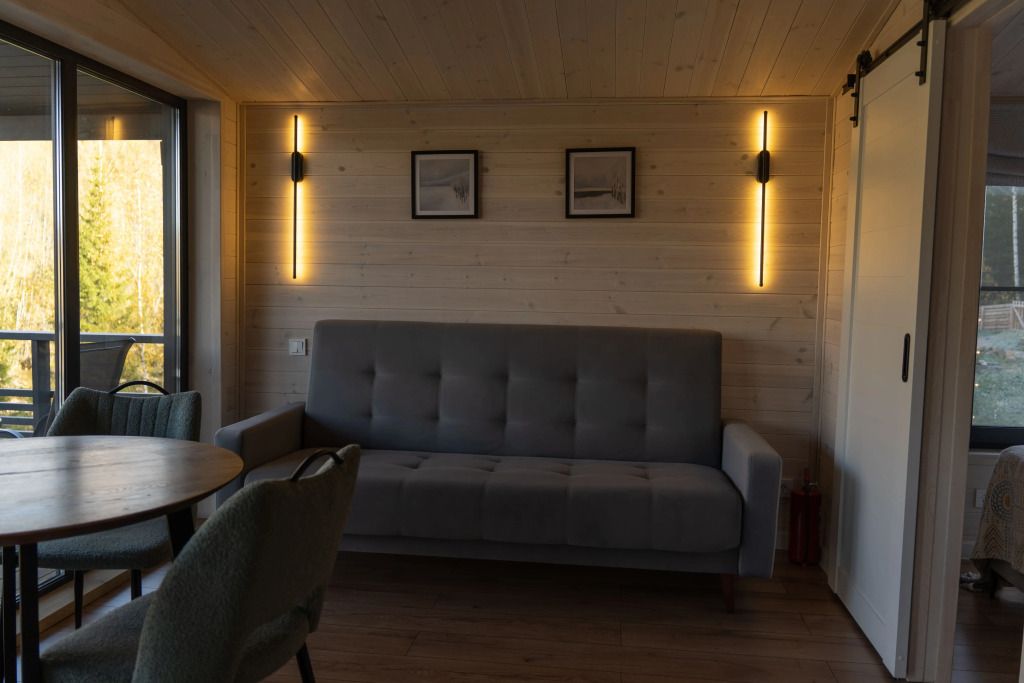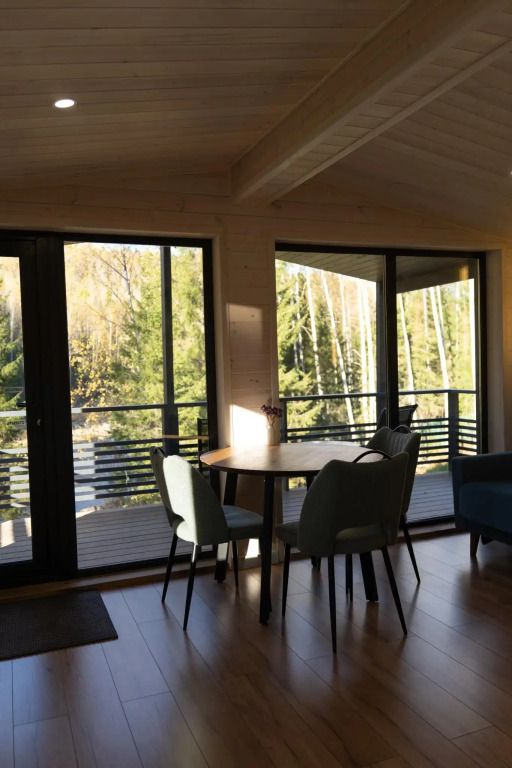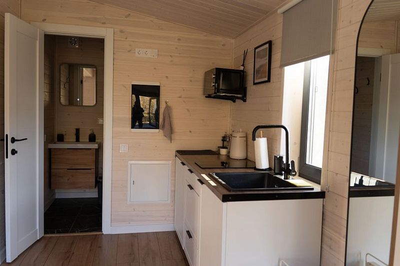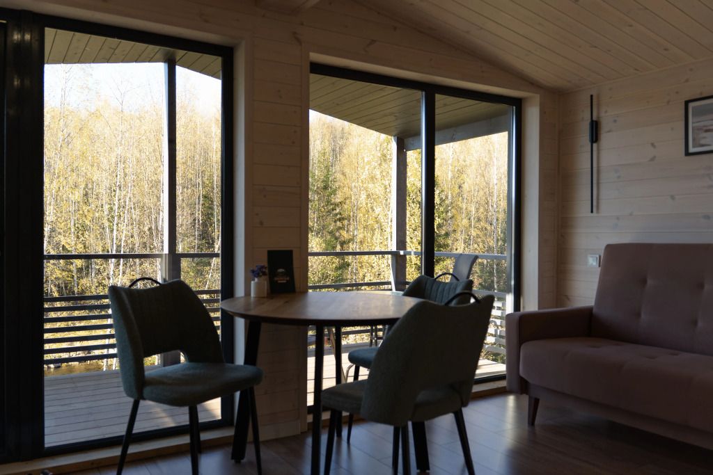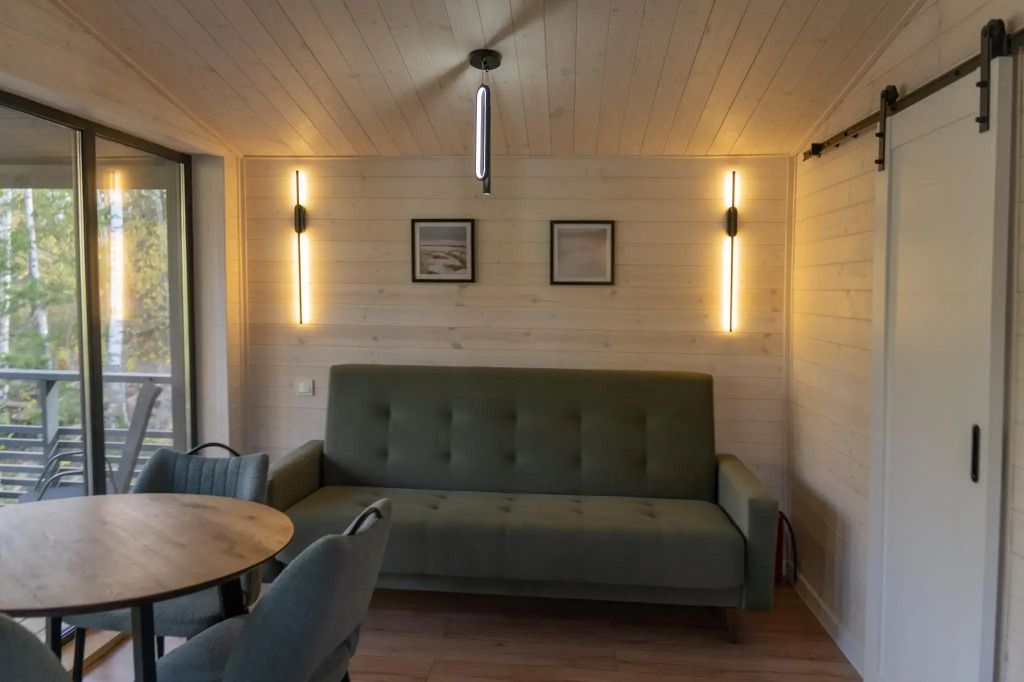 Каждый дом оборудован всем необходимым для комфортного отдыха: полностью оборудованная кухня и уютная обеденная зона с большим круглым столом создают идеальные условия для семейных ужинов. Комфортные теплые полы и конвекторные обогреватели помогут создать расслабляющую атмосферу в любую погоду.