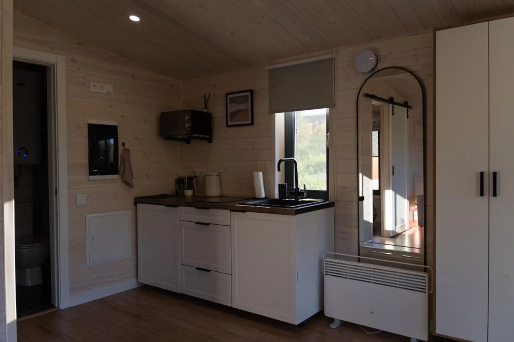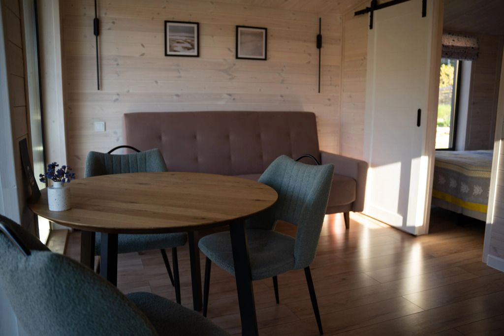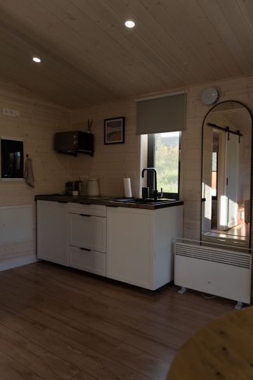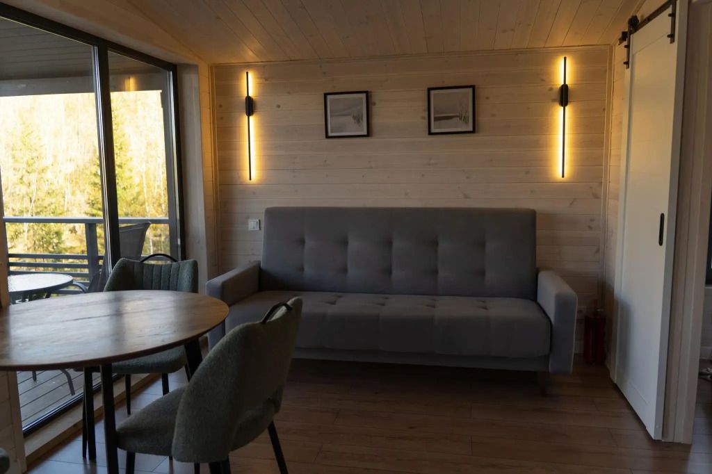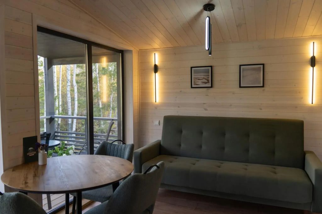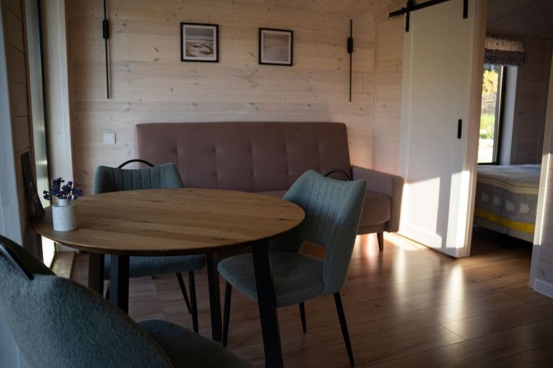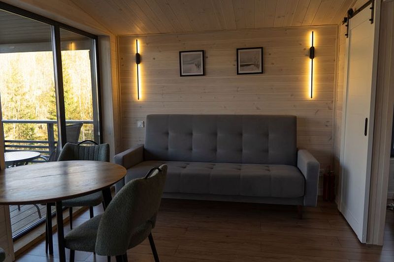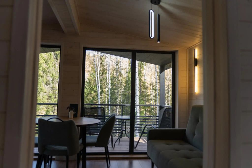 Каждый дом оборудован всем необходимым для комфортного отдыха: полностью оборудованная кухня и уютная обеденная зона с большим круглым столом создают идеальные условия для семейных ужинов. Комфортные теплые полы и конвекторные обогреватели помогут создать расслабляющую атмосферу в любую погоду.