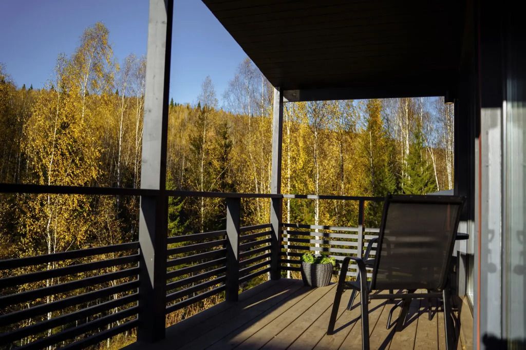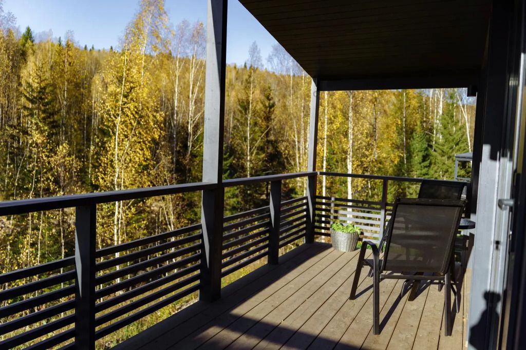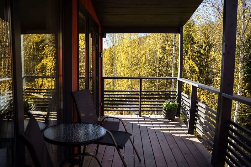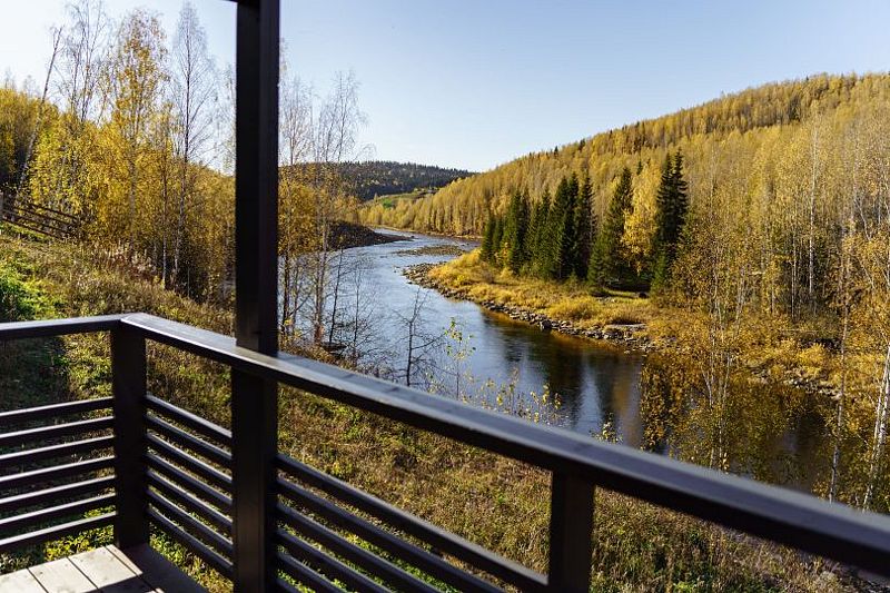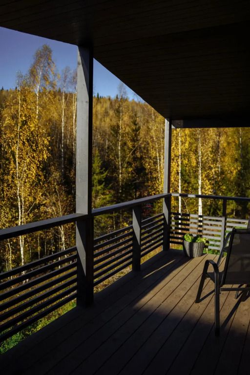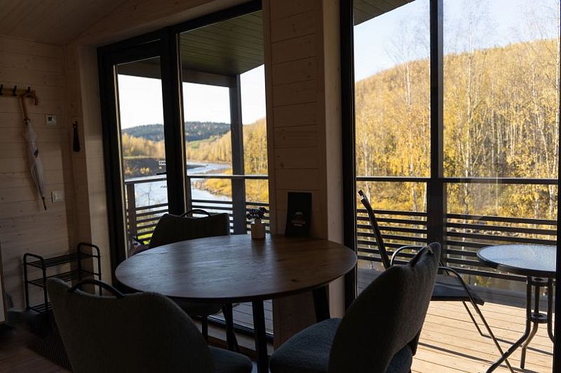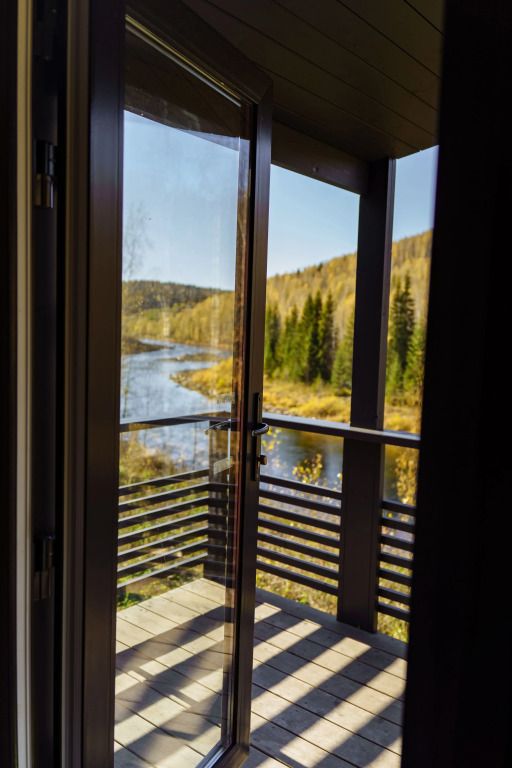 В этом доме больше всего видна река с ее изгибами. В доме много света, а вечером с террасы открывается лучший вид на закаты. Из больших окон открывается прекрасная панорама на местный ландшафт: реки, лес, горы.
