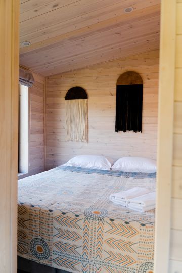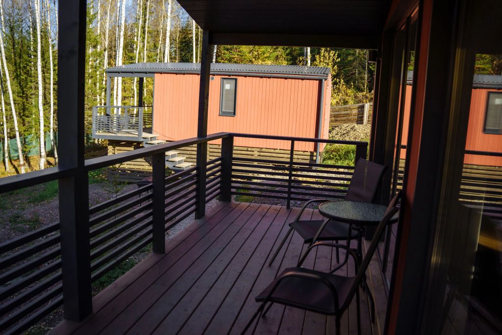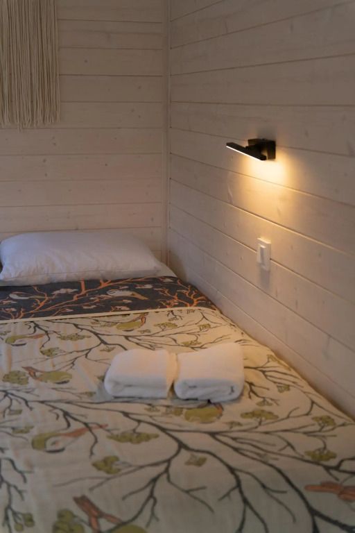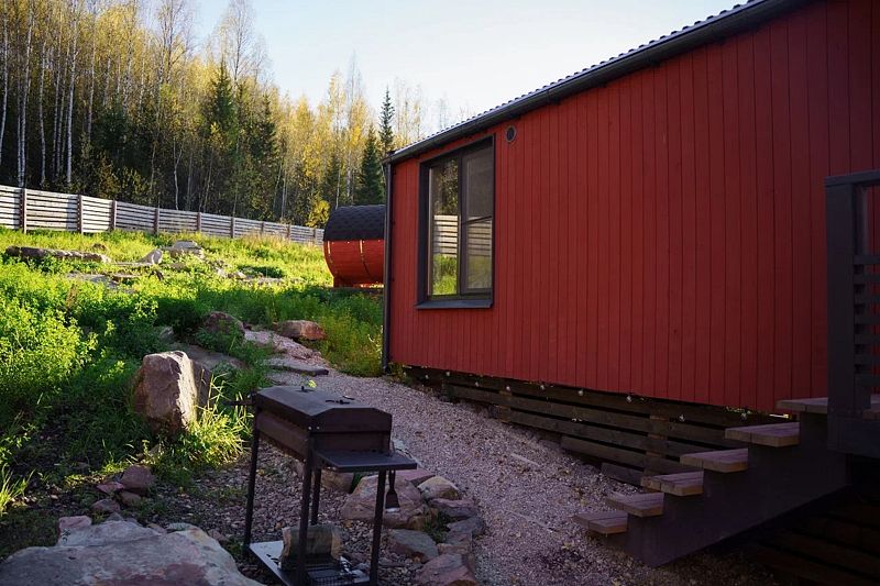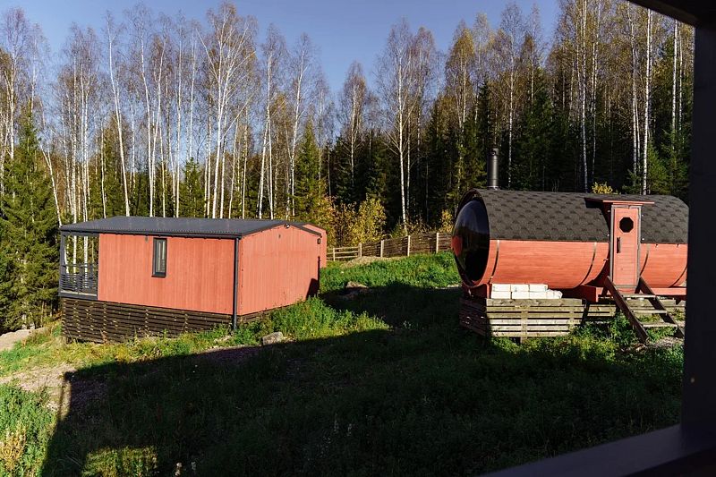 На территории глэмпинга находится уютная баня-бочка с впечатляющим панорамным окном. Здесь гости могут расслабиться и насладиться видами на окружающий лес без ограничения по времени, наслаждаясь паром и гармонией природы.