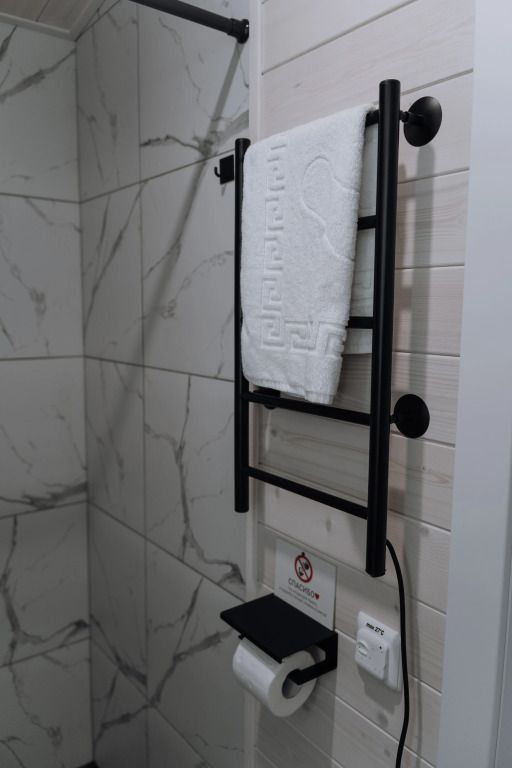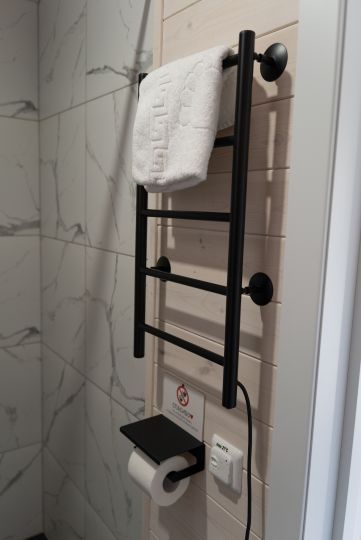 Белое постельное белье и набор белых полотенец для каждого гостя. Во всем доме установлены теплые полы и конвекторный обогреватель, который самостоятельно поддерживает комфортную температуру.