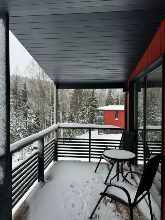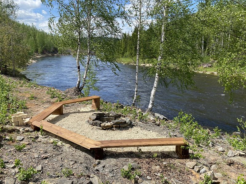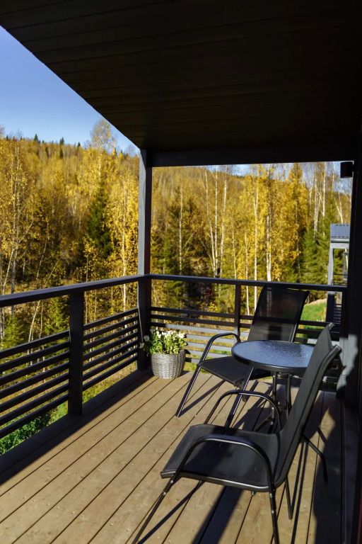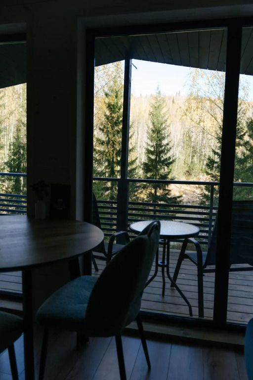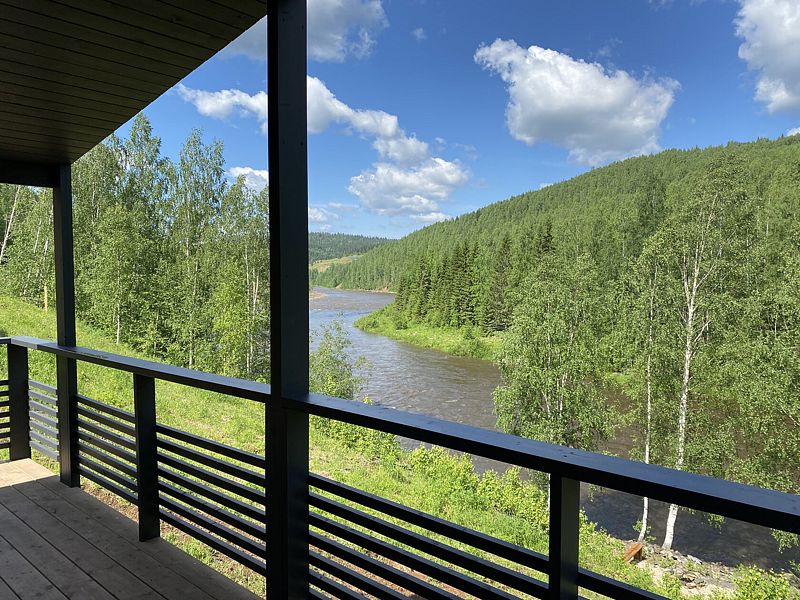Светлый дом с открытым видом на Усьву. Из панорамных окон открывается вид на бурное течение реки. Берег окружают березы и ели, которые также можно наблюдать с террасы дома. А летом на берегу есть прекрасное место для купания в чистой горной реке.