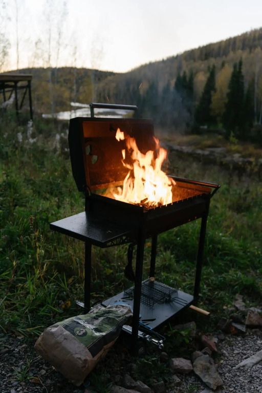Рядом с каждым домиком расположен индивидуальный мангал с удобной крышкой, который обеспечивает оптимальные условия для приготовления шашлыка и других блюд. Это прекрасное место для семейного или дружеского отдыха на свежем воздухе.