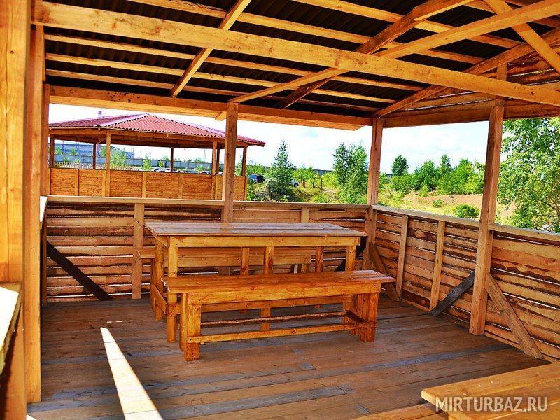 Зона барбекю под навесом от ветра и дождя (большой удобный мангал, решетка, веер).Также можно взять в прокат инвентарь для плова (печь, казан, шумовка, дрова)
