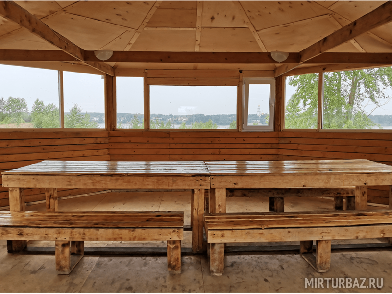 Розетка, освещение, дровяная конвекционная печь, 2 больших деревянных стола, 4 деревянных скамейки, кухонная стойка, чайник, аудиосистема, светомузыка.