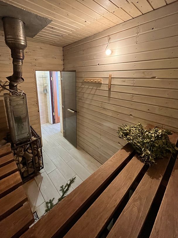 Особое место в этом уголке природы занимает настоящая русская баня на дровах. Ее просторная парилка и уютная зона отдыха с теплым полом позволяют гостям полностью расслабиться и восстановить силы. Вдали от городской суеты, здесь можно погрузиться в атмосферу спокойствия, наслаждаясь неспешными беседами и звуками природы.