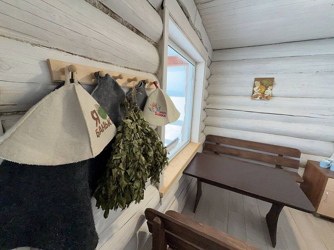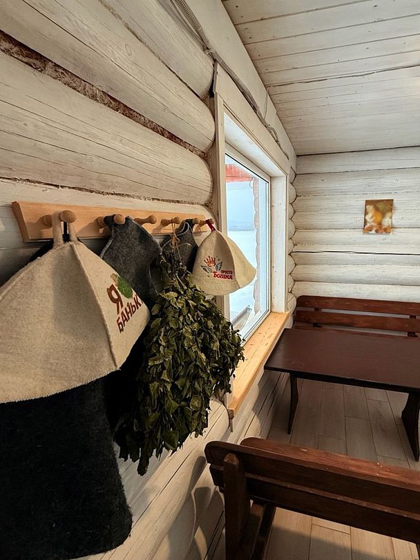 Для истинного русского парения гостям предлагают березовый веник, который не только дарит ощущение свежести, но и становится символом древних традиций и бережного отношения к природе.