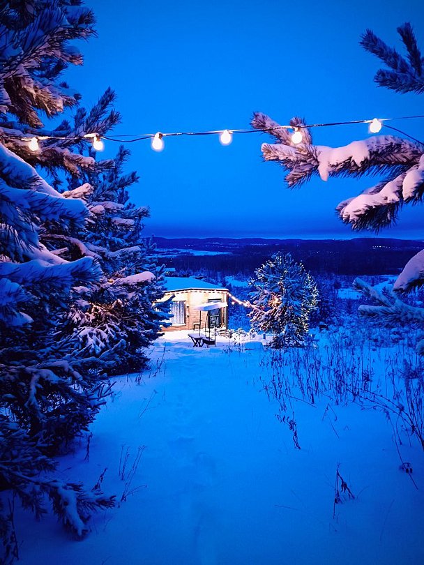 Домик расположен на вершине горы, откуда открываются великолепные виды, участок граничит с хвойным лесом, а в пяти минутах ходьбы есть пруд. Это именно то место, где вы можете отдохнуть от городской суеты, насладиться тишиной, спокойствием и природой, быть ближе друг к другу и наполниться умиротворением, сохранив в памяти драгоценные моменты тихого, уютного счастья.