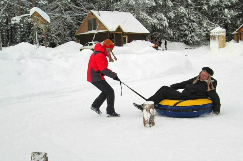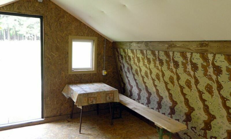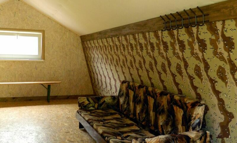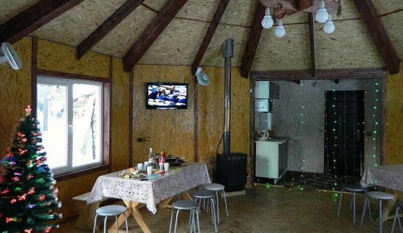 Изба приспособлена ко всем сезонам. Рассчитана на 25-30 человек. Есть 6 спальных мест. Кухонная зона. Тёплый сан. узел.